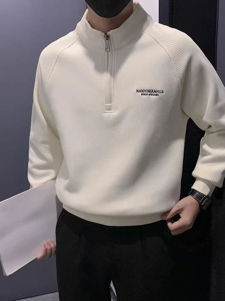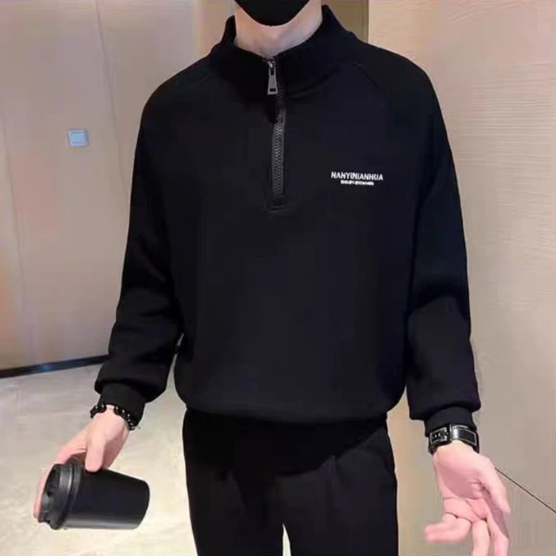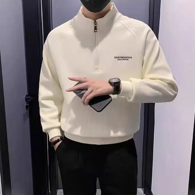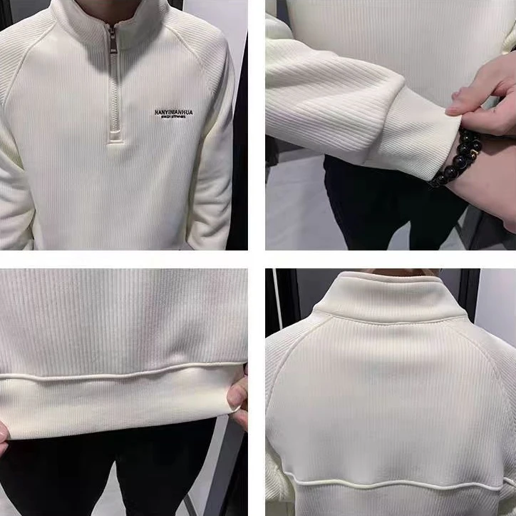 Fleece-Lined Warm Sweatshirts for Men No Brand Luxury Aesthetic Streetwear Tops Simple Emo Welcome Deal with Zipper Man Pullover
