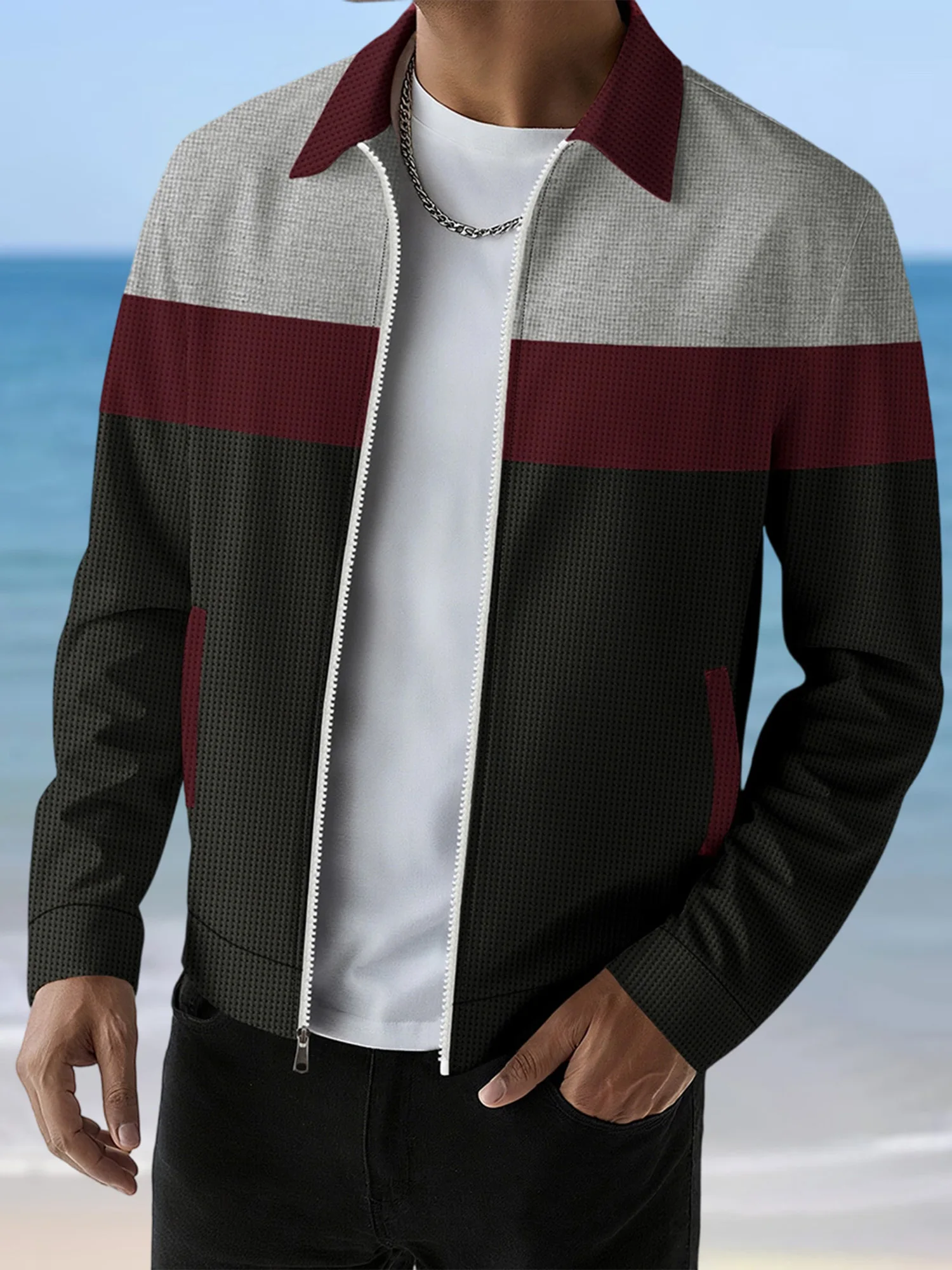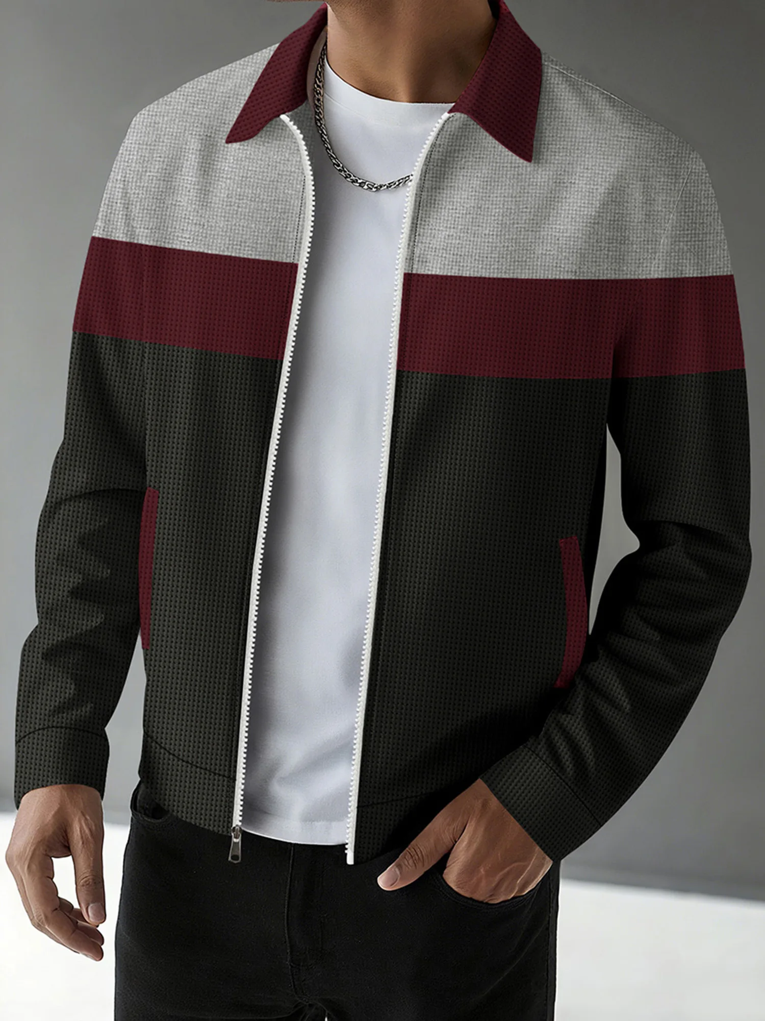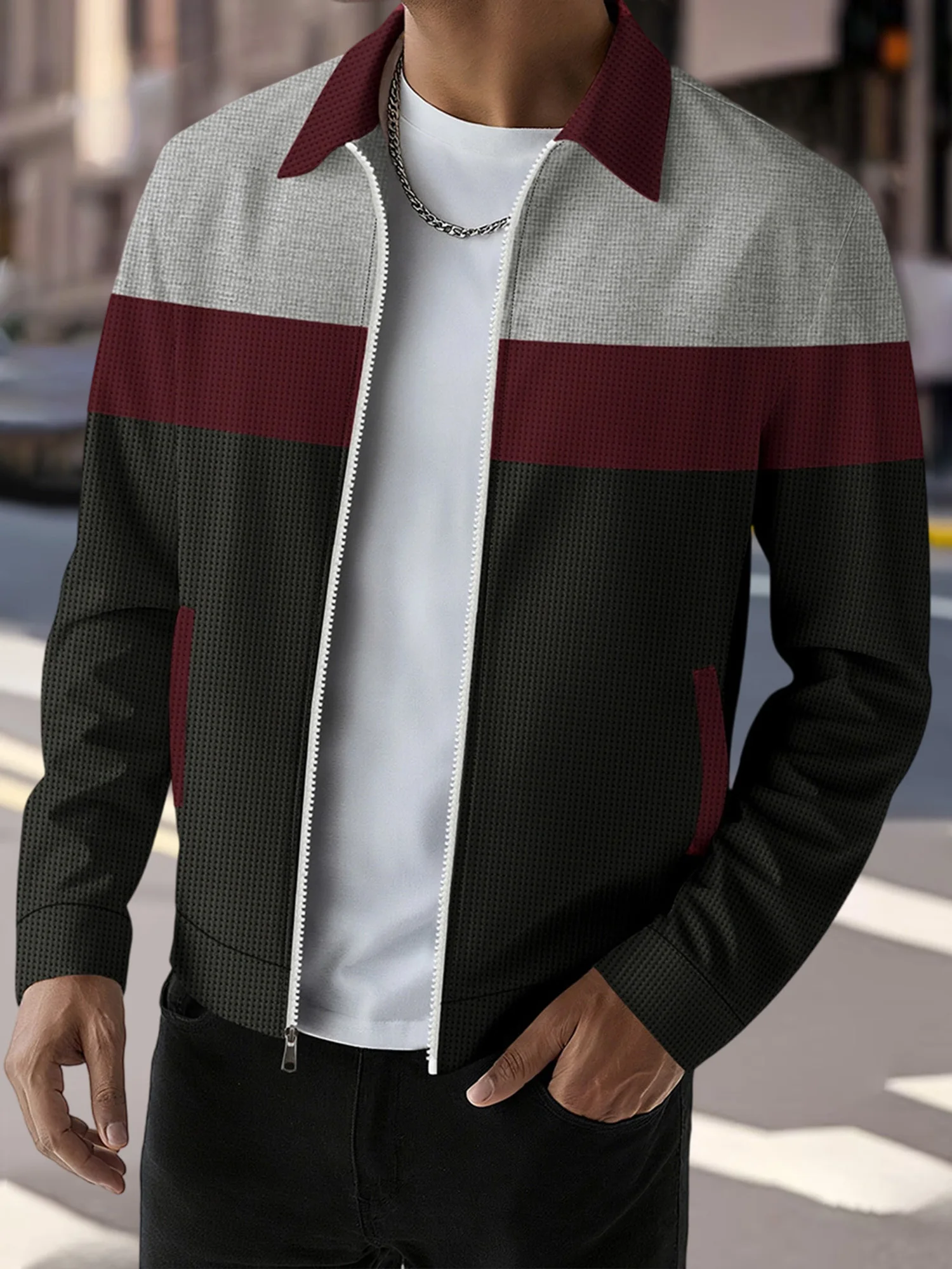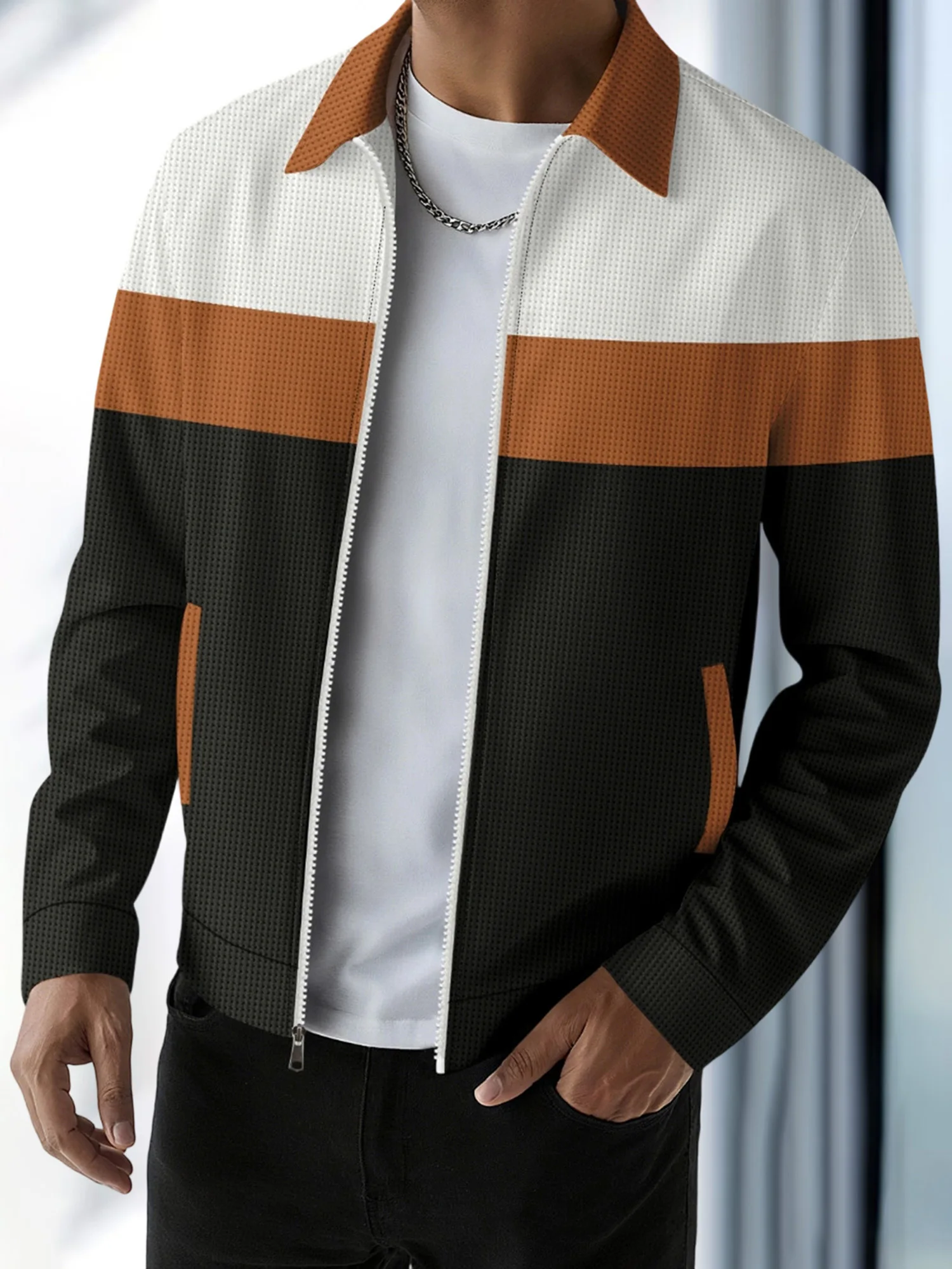 Men's Jacket Casual Lapel Collar Fall Full Zip Up Patchwork Outerwear Fashion Coats with Pockets