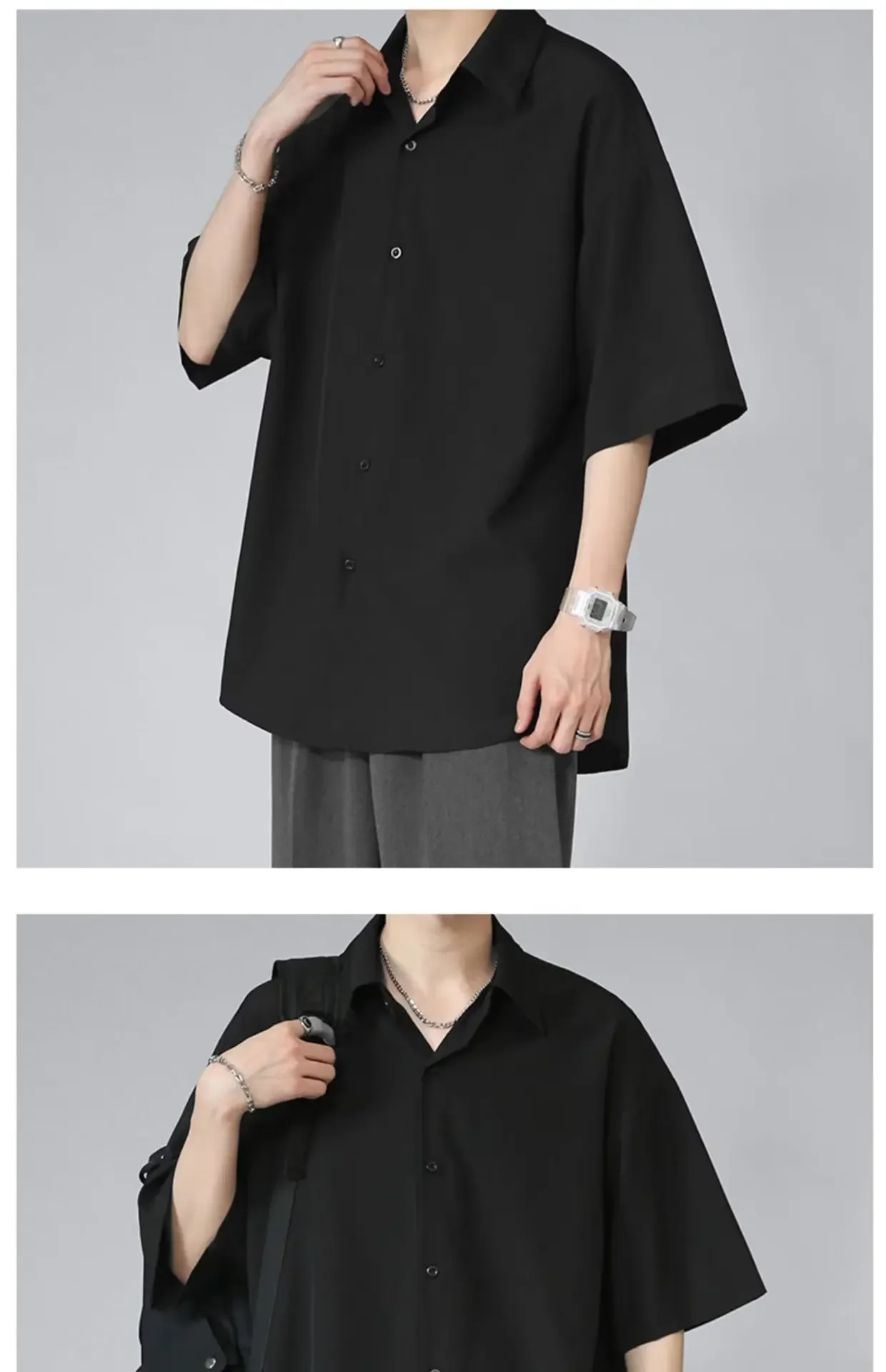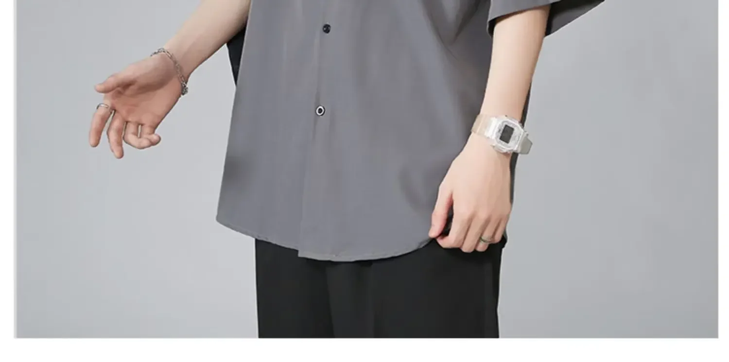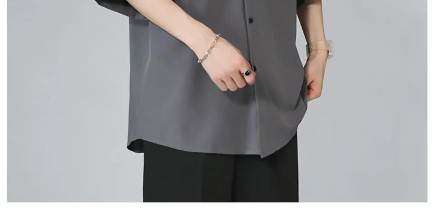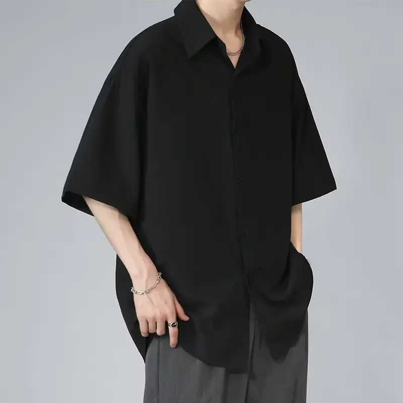 Men's Ice Silk Short Sleeve Shirt Casual Loose Fit Korean Style Trendy Black Shirt For Summer Thin Sleeve Casual