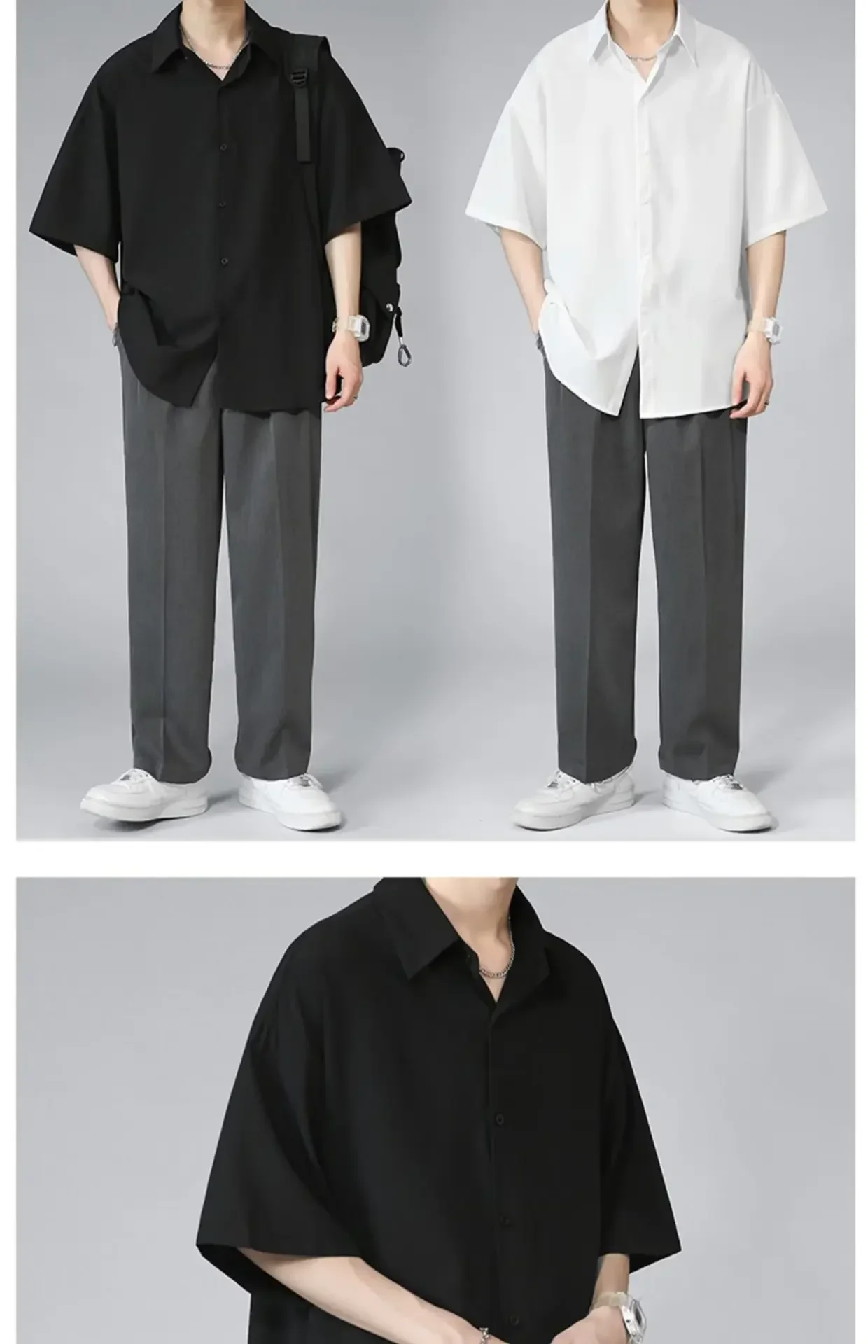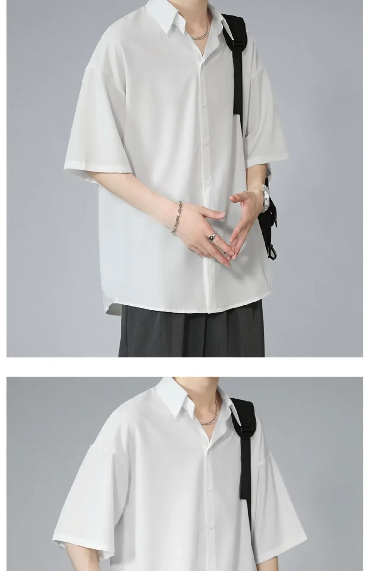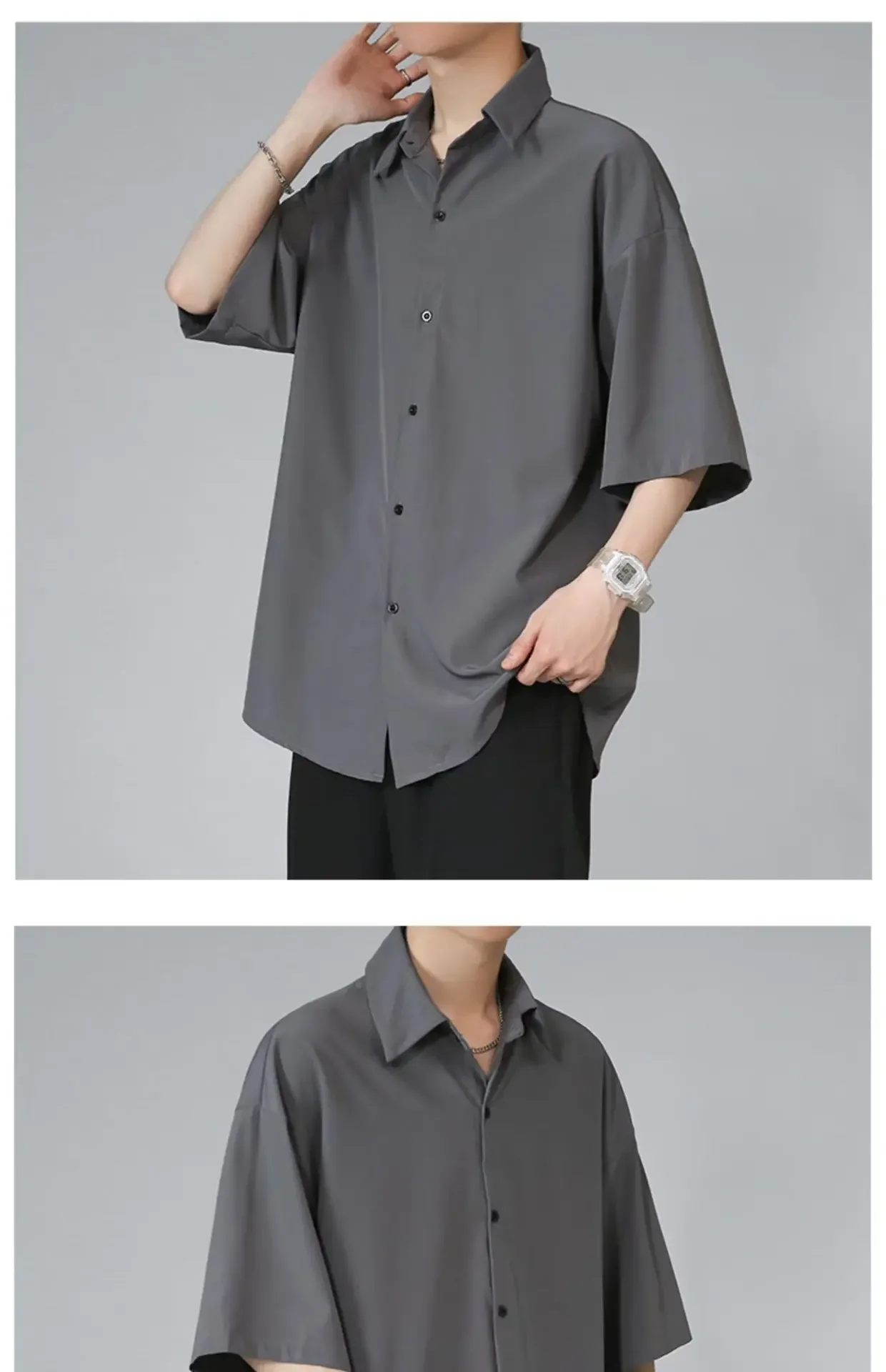 Men's Ice Silk Short Sleeve Shirt Casual Loose Fit Korean Style Trendy Black Shirt For Summer Thin Sleeve Casual