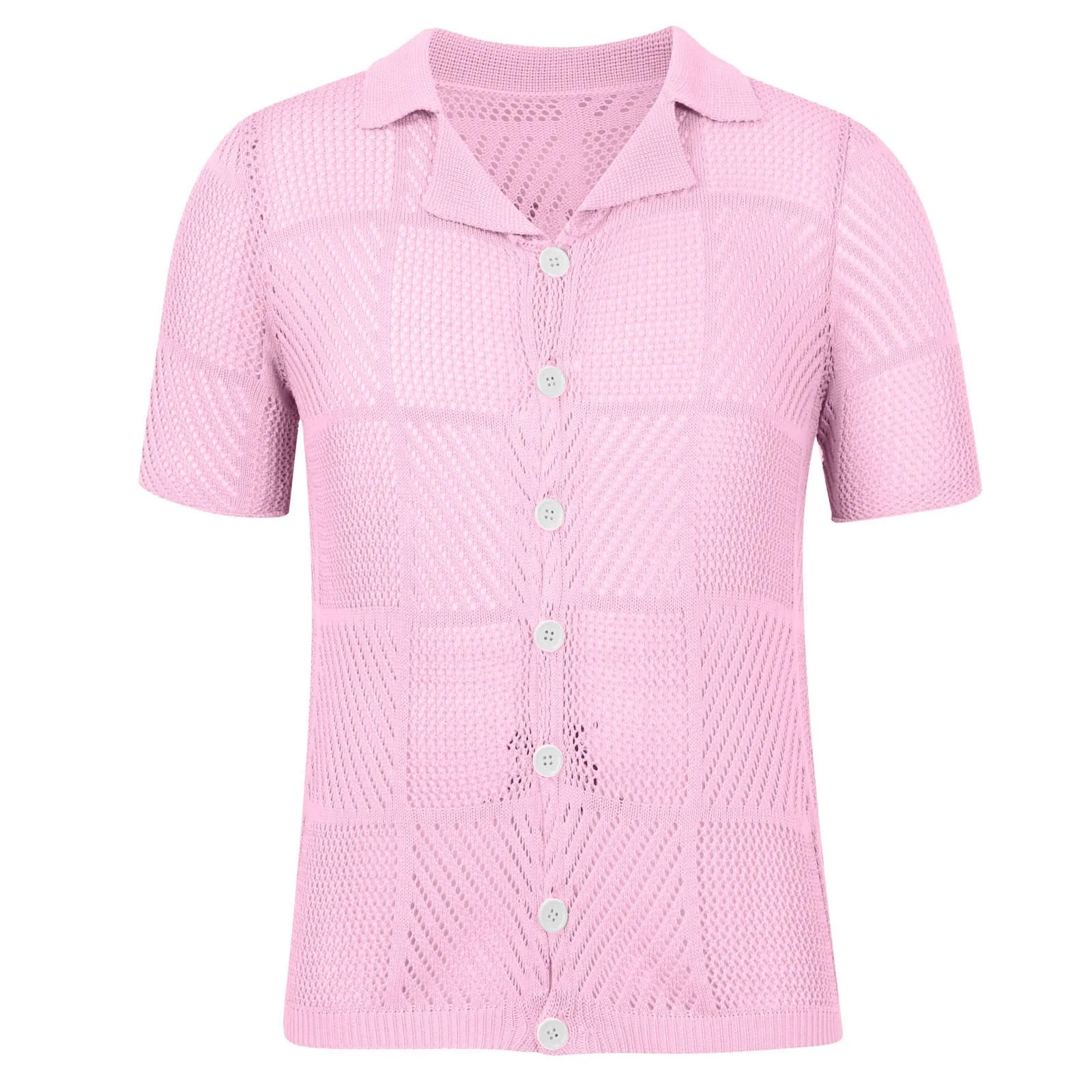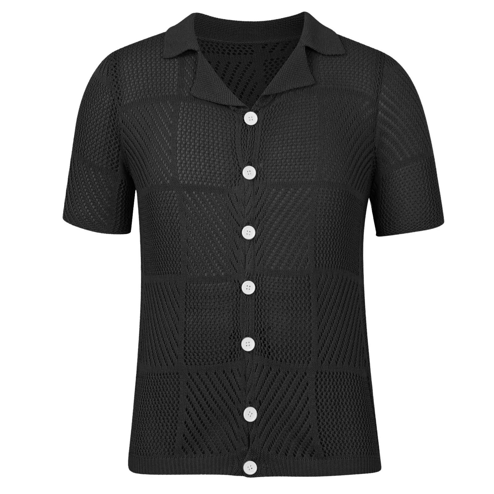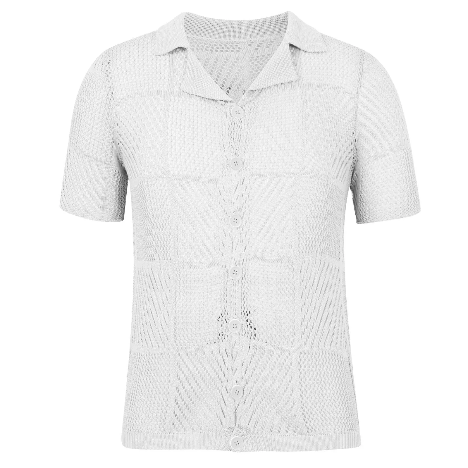 Summer Men's Knit Cardigan Thin Hollow Short Sleeved Shirt