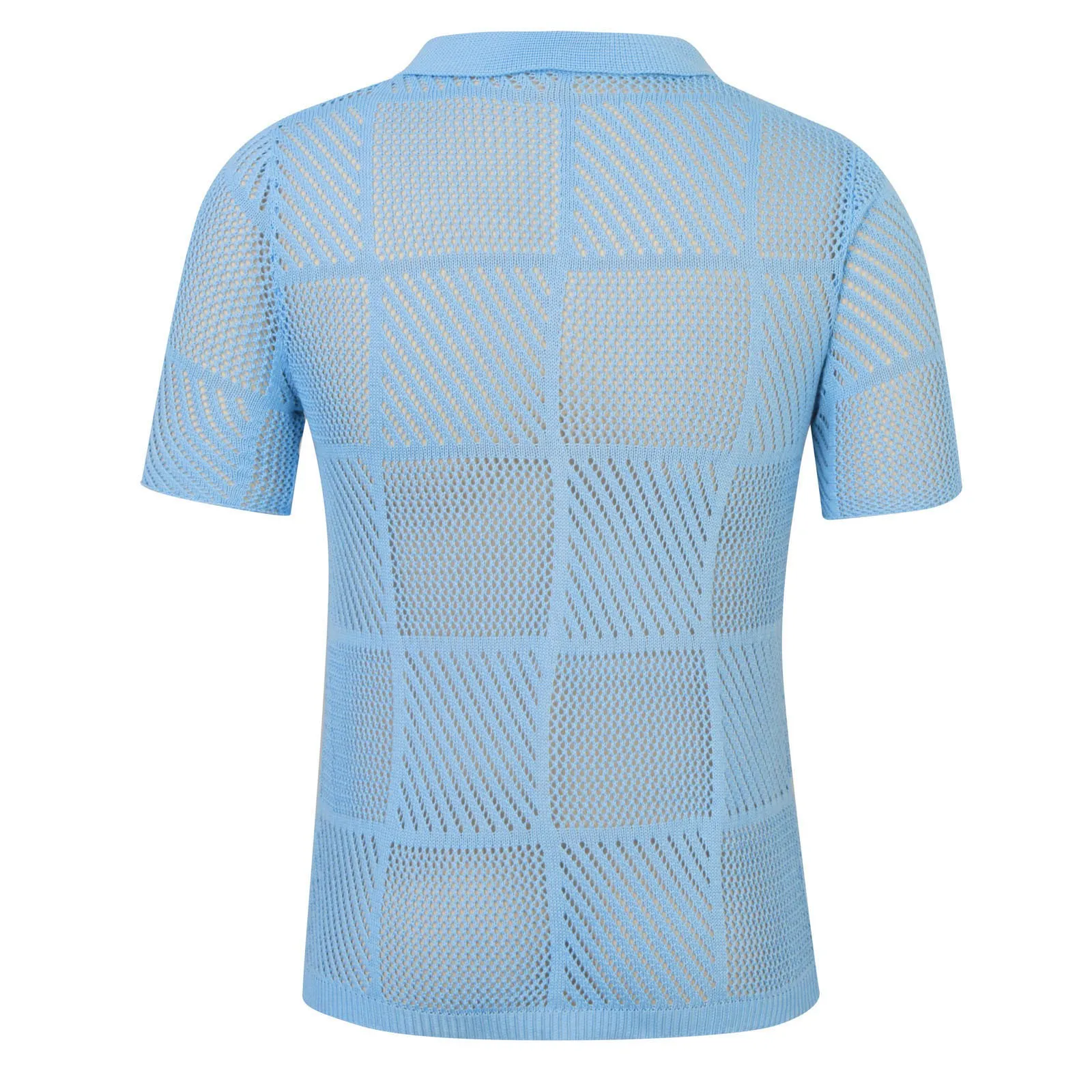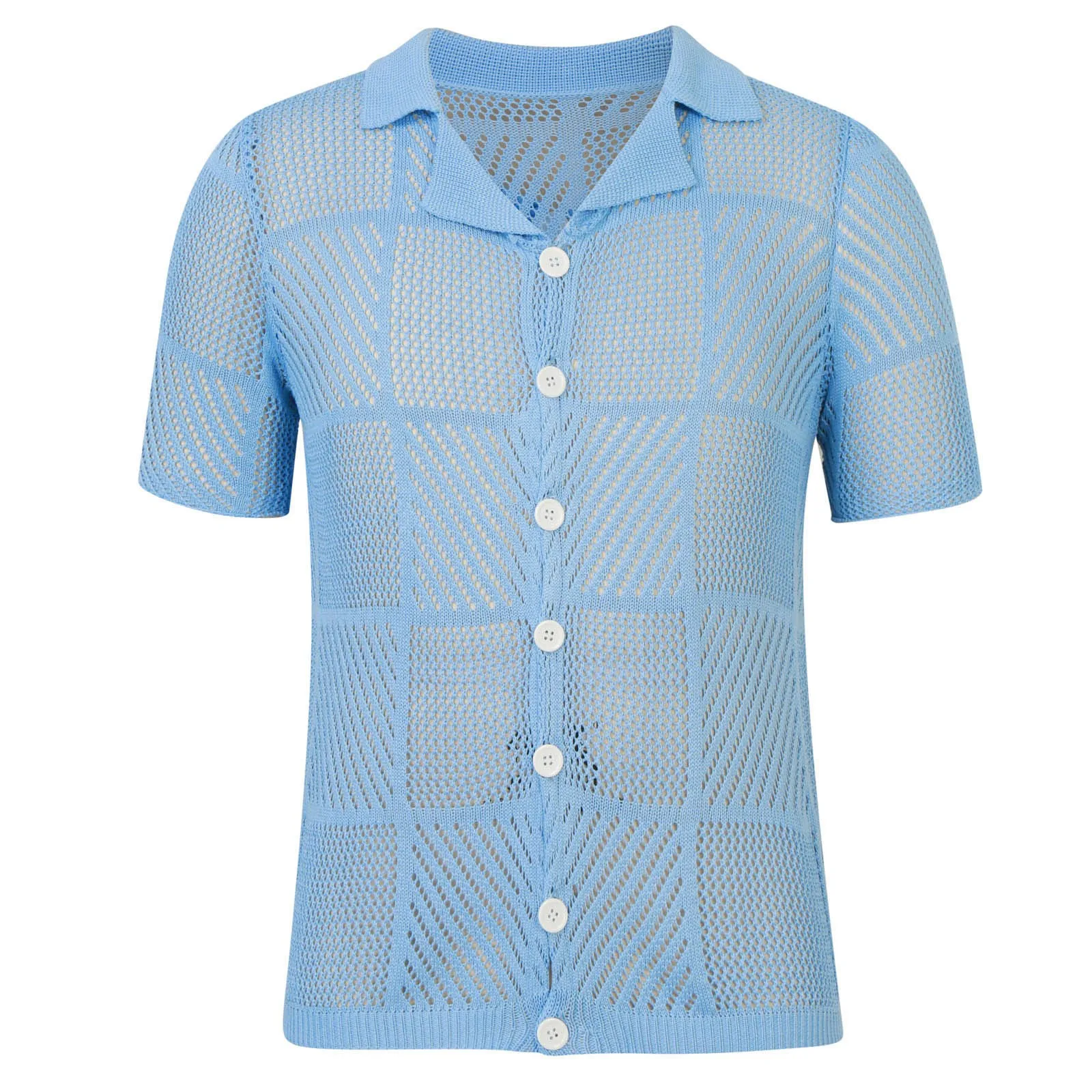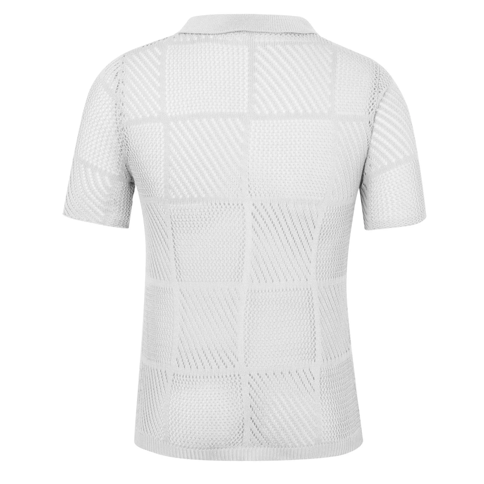 Summer Men's Knit Cardigan Thin Hollow Short Sleeved Shirt